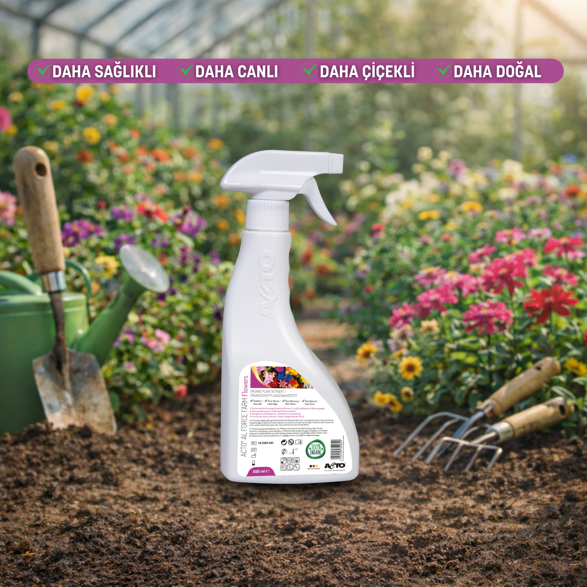 ACTO® AL FORCE Flowers 500 ml Organik Sıvı Gübre | Saksı & Bahçe Çiçekleri İçin Bitki Besini