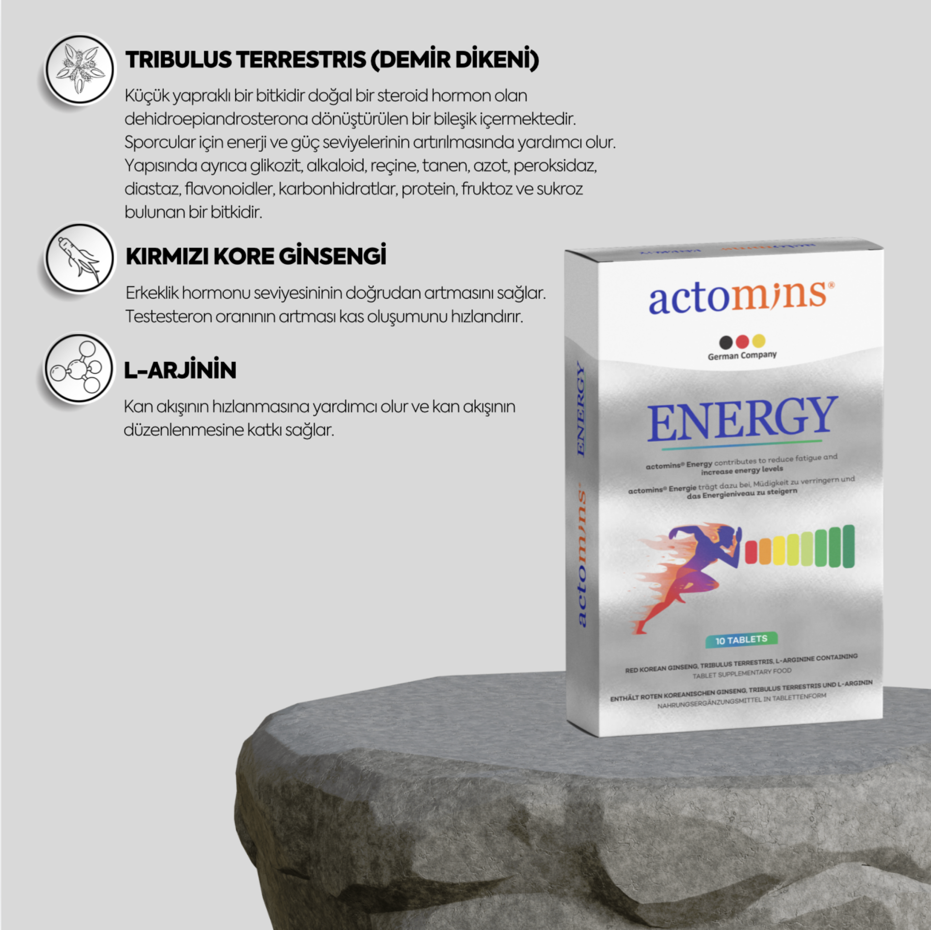 Actomins Energy Tribulus, Kırmızı Kore Ginsengi, L-arjinin İçeren Gıda Takviyesi