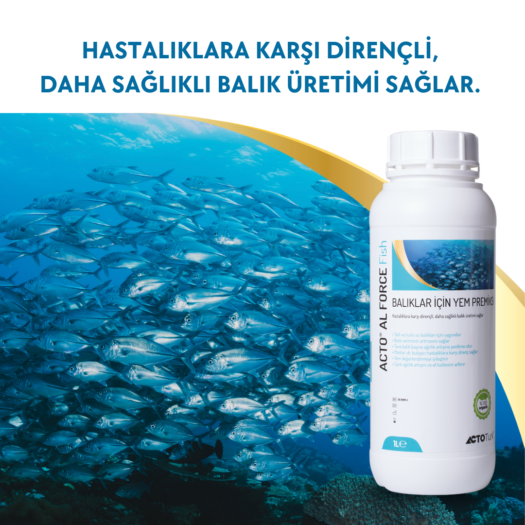 ACTO® AL FORCE Fish, içerdigi organik maddeler,organik karbon,vitamin ve mineraller sayesinde balıklar için güçlü bir yem premiksidir.