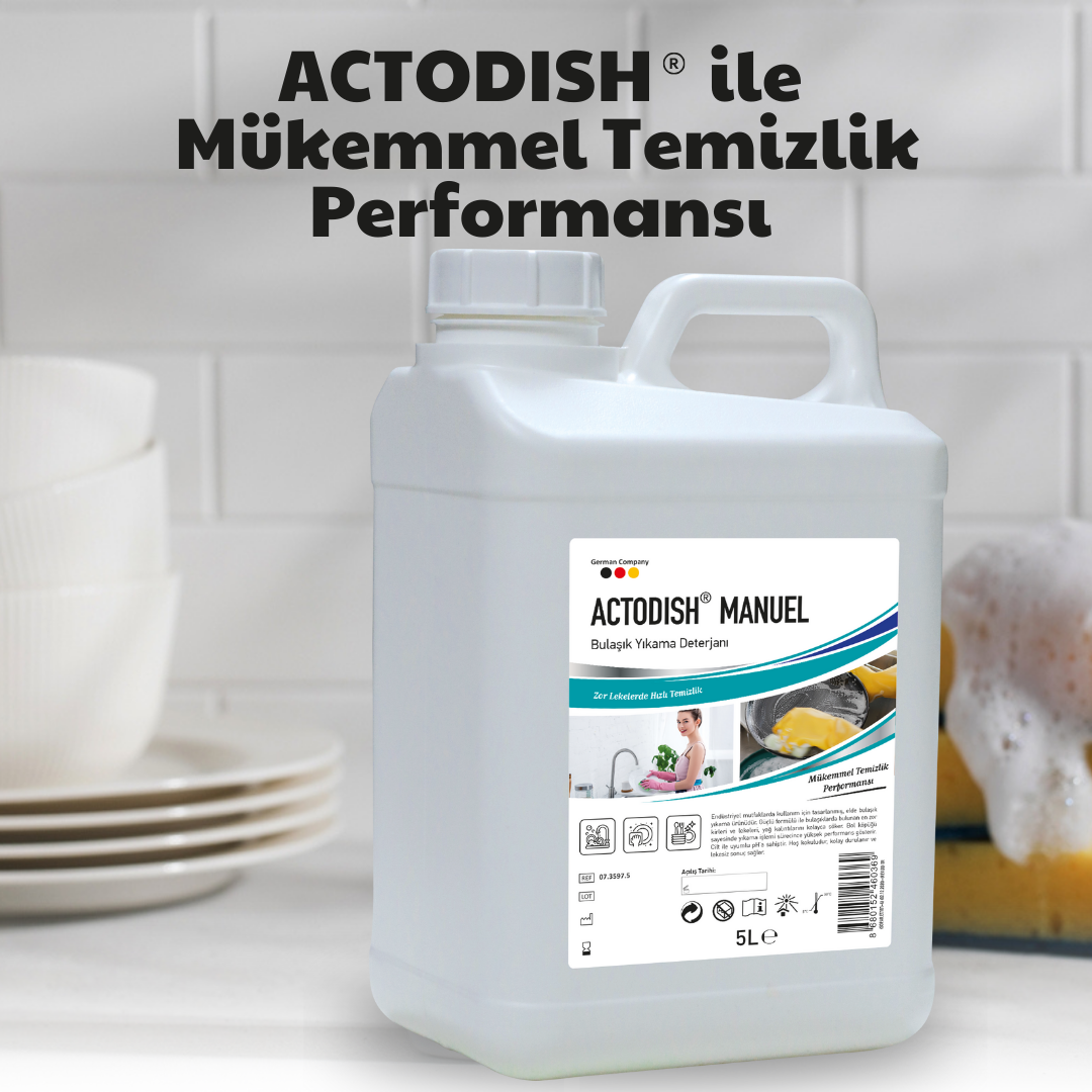 Actodish® Manuel, endüstriyel mutfaklar için tasarlanmış manuel bir bulaşık yıkama ürünüdür. Etkili formülü, zararlı kirleri, lekeleri ve yağ lekelerini kolayca temizlemeye yardımcı olur. Yüksek köpüklenme bileşimi bulaşık yıkama sırasında yüksek performans sağlamaya yardımcı olur.