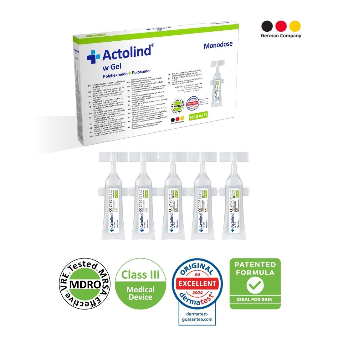 • Actolind® w Solution yara yüzeyini etkili bir şekilde temizlerken, Actolind® w Gel yara yüzeyini korur ve nemlendirir.